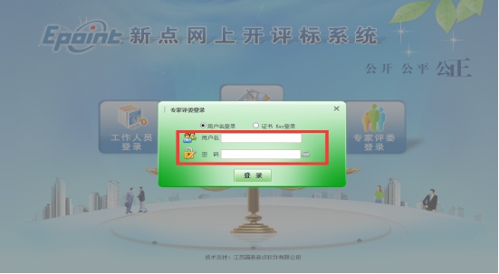 2、点击【专家评委登录】输入评委评标的账号密码,登录系统。