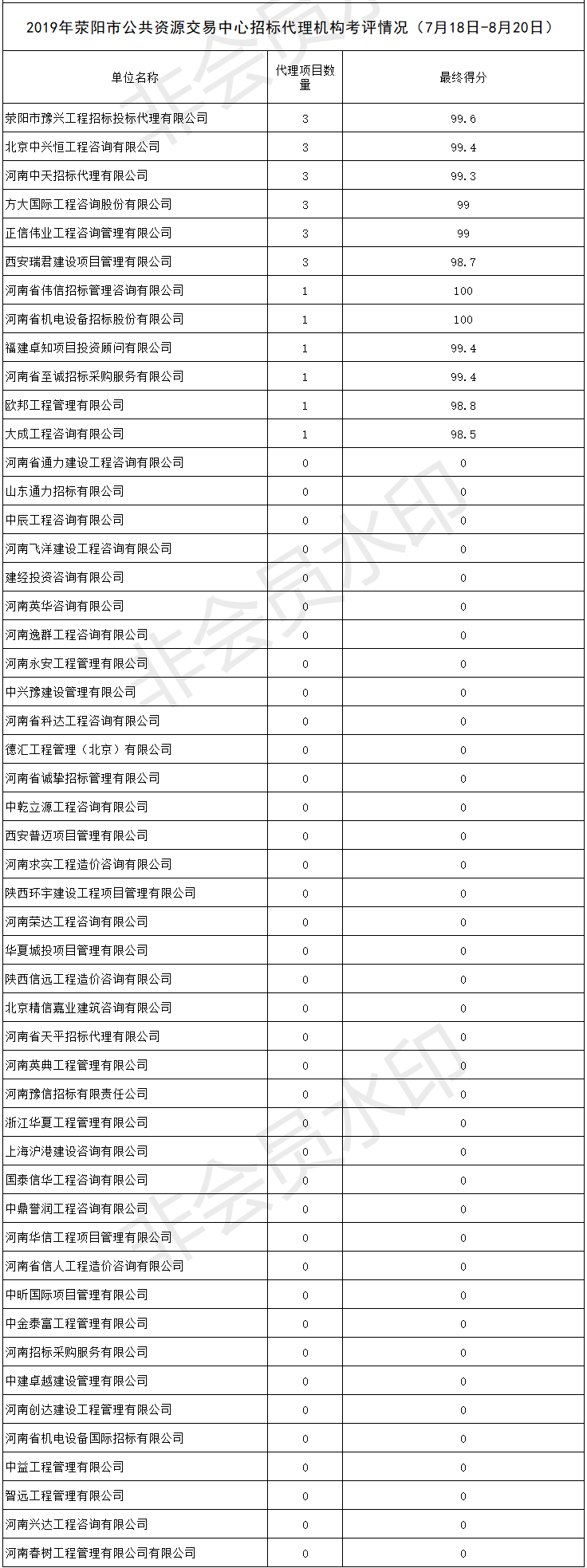 2019年beat365体育登陆网址_3658官方网_365bet在线注册公共资源交易中心招标代理机构考评情况(7月18日-8月20日)
