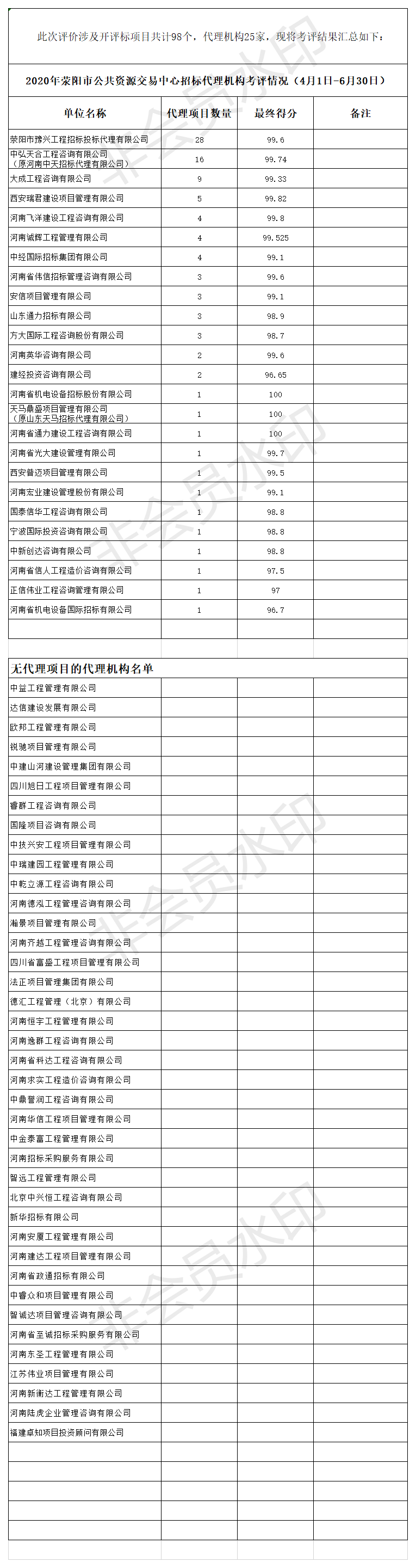 2020年beat365体育登陆网址_3658官方网_365bet在线注册公共资源交易中心招标代理机构考评情况(4月1日-6月30日)