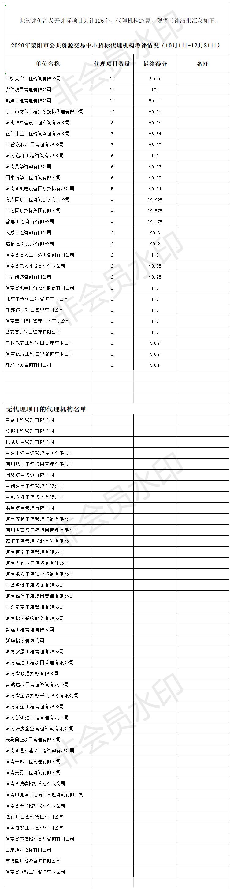 2020年beat365体育登陆网址_3658官方网_365bet在线注册公共资源交易中心招标代理机构考评情况(10月1日-12月31日)