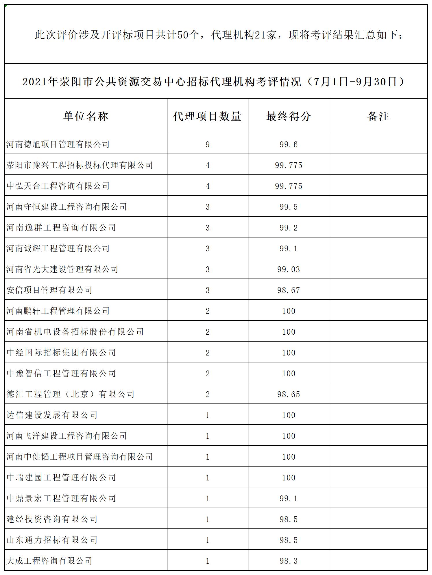 2021年beat365体育登陆网址_3658官方网_365bet在线注册公共资源交易中心招标代理机构考评情况(7月1日-9月30日)