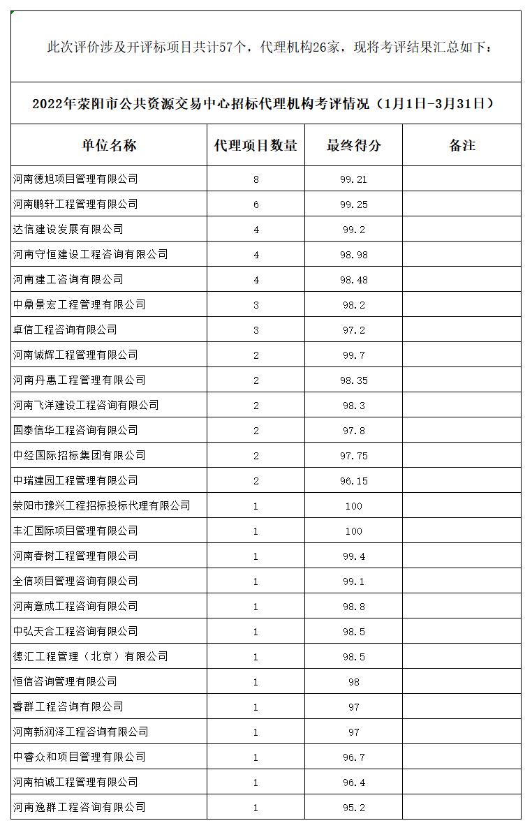 2022年beat365体育登陆网址_3658官方网_365bet在线注册公共资源交易中心招标代理机构考评情况(1月1日-3月31日)