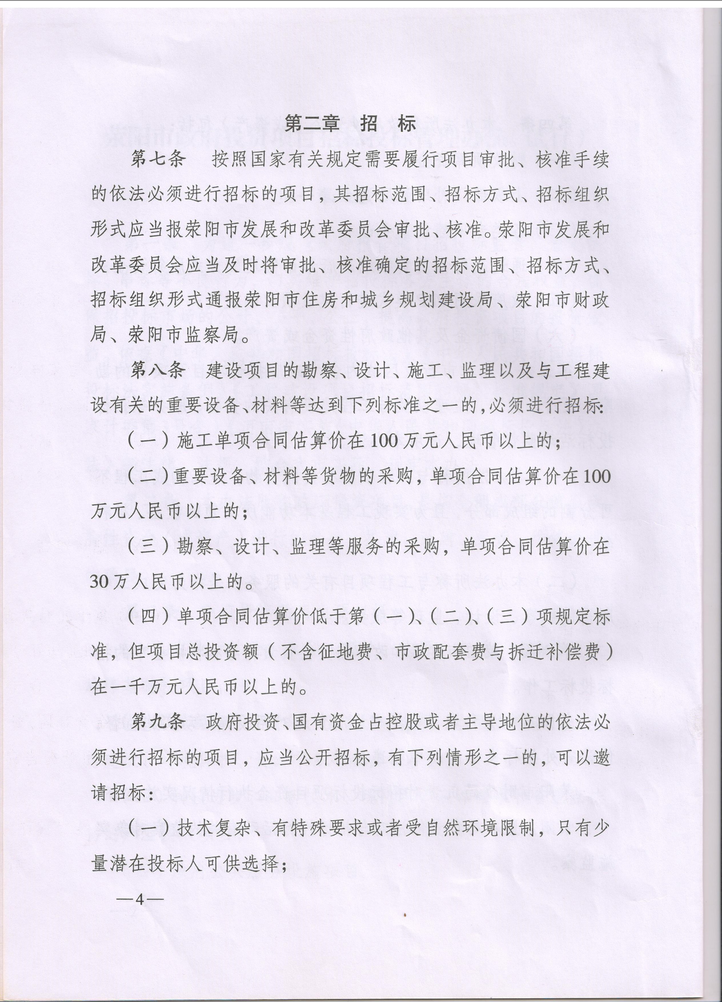 第八条 建设项目的勘察、设计、施工、监理以及与工程建设有关的重要设备、材料等达到下列标准之一的,必须进行招标: